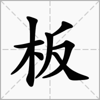 (形声。从木,反声。《说文》作“版”。本义:片状的木头。后凡施于宫室器用的片状物皆可称板)