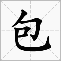 (会意。小篆字形,外边是“勹”。中间是个“巳”(sì)字,“象子未成形”。“勹”就是“包”的本字。本义:裹)