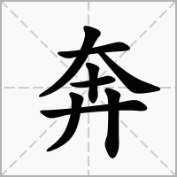 (会意。金文字形,上面从“大”(人),象人挥动双手,下面从“止”(趾),而且是三个“止”,表示快跑。本义:快跑)