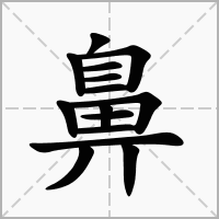 (会意。从自,从畀(bì),“畀”又兼作声符。“自”是“鼻”的本字,作“自己”用后,另造了“鼻”字。“畀”是给予、付与的意思。合起来表示一呼一吸,自相给予。本义:鼻子)
