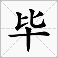 又如:礼毕;毕婚(完婚);毕世(终其一生);毕老(终其天年);毕事(完事,了事)