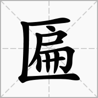 同“扁”。形体的厚度比长度、宽度小;不圆 。