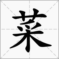 (形声。采声。上古时期,菜只指蔬菜,不包括肉类、蛋类,到了中古以后,菜就包括内类、蛋 类及其熟食在内了。本义:蔬菜)