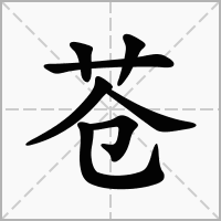 又如:苍山(青山);苍苔(青苔);苍头(旧指仆人。汉时奴仆皆以深青色巾包头,故名;又指老年人)