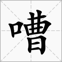 又如:嘈嚷(吵嚷);嘈啐(喧闹声)