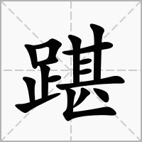 〔~踔(chuō)〕a.一脚跳行、跛脚走路的样子;b.迅速滋长;c.奔跃。