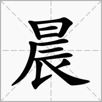 (会意。从臼,从辰,辰时也。辰亦声。本义:星名。即房星)清晨