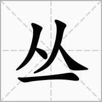 又如:丛顇(繁多杂乱的样子);丛谈(各种轶事杂说);丛委(杂谈的堆积);丛丛杂杂(杂乱而繁多的样子);丛细,丛琐(繁多琐碎)