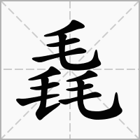 又如:毳褐(毛织的僧衣);毳帘(毛织的帘子);毳羽(羽毛)
