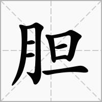 又如:胆结石(胆石症);胆裂(胆为之破裂。形容恐惧之甚);胆裂魂飞(恐惧惊怖到极点);胆液(胆汁)