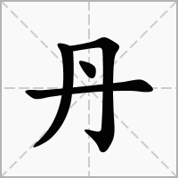 (象形。甲骨文字形,外面框框象矿井形,里边的一横是加上的符号,表示那里有丹砂。本义:辰砂,朱砂)