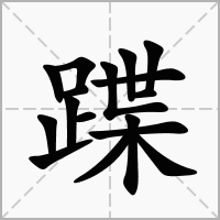 又如:蹀马(使马踏脚起舞的演艺);蹀座(双足交叠而坐)