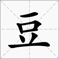 (象形。甲骨文字形,形似高脚盘,或有盖。汉字部首之一,从“豆”的字或与食器有关。或与豆类有关。本义:古代一种盛食物的器皿)