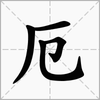 (厂卩会意。“厂”象山崖,“卩”象人在崖洞下卷曲身子不得伸展。本义:困厄,遭遇困境)同本义