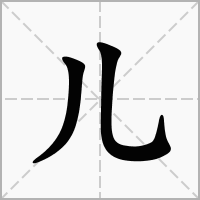 (象形。甲骨文字形,下面是“人”字,上面象小儿张口哭笑。“儿”是汉字部首之一,从“儿”的字大都与“人”有关。本义:幼儿。古时男称儿,女称婴,后来孩童都称儿)