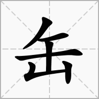 (象形。甲骨文字形,上面是“午”字,即“杵”。下面是“缶”的本体。“杵”是棒子,可用来制坯。“缶”又是秦乐器,“杵”可以敲击成曲。本义:瓦器,圆腹小口,用以盛酒浆等)