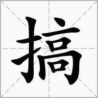 ((gǎo)形声。从手,高声。本义:做,干,办,弄)