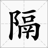 (形声。从阜,鬲(gé)声。从“阜”,表示与地势高低上下有关。本义:阻隔、遮断)