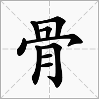 (会意。从冎(guǎ),小篆象去掉肉的骨形,意思是“剐”。从肉,表示骨与肉相连。“骨”是汉字部首之一,从“骨”的字多与骨头和人体有关。本义:骨头)