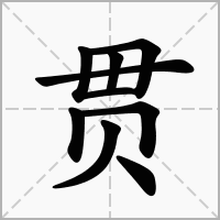 (会意。从毌(guàn),从贝(表示与钱财有关)。“毌”是贯穿之贯,象穿物之形。本义:穿钱的绳子)