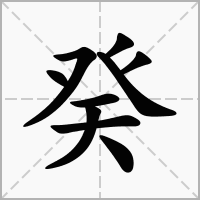 (象形。甲骨文字形,象二戣(kuí),古代兵器。交叉之形,盖即“戣”之古文。①本义:古代兵器。戟属。②天干的第十位),用作顺序的第十
