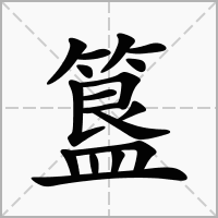 (会意,从竹,从皿,从皀。本义:古代青铜或陶制盛食物的容器,圆口,两耳或四耳)同本义