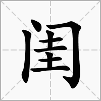 又如:闺閤(女子的卧房。卧房,内室。也作闺阁);闺阃(妇女所居的内室);闺阈(女子居处的内室。即闺房);闺声(来自闺房的笑声)