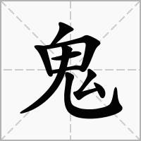(象形。甲骨文字形,下面是个“人”字,上面象一个可怕的脑袋(非“田”字),是人们想象中的似人非人的怪物。“鬼”是汉字部首之一,从“鬼”的字大多与迷信、鬼神有关。本义:迷信的人认为人死后有“灵魂”,称之为“鬼”)