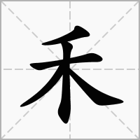 (象形。金文字形,象垂穗的禾本科农作物。汉字部首之一。从“禾”的字多与农作物有关。本义:谷类作物的总称)