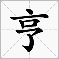 (象形。金文字形,象盛祭品之器形。小篆作“亳”,隶书写作“亨”、“享”,三字其实是同一个字。本义:献。引申义:通达)
