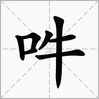 〔~牙〕狗争斗的声音。亦作“吽呀”。