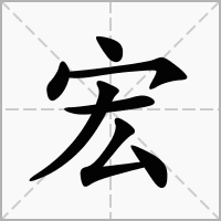 宏,屋深响也。——《说文》。段玉裁注:“屋深也。各本深下衍响字,此因下文‘屋响’而误,今依《韵会》、《集韵》、《类篇》正。…屋深者,其内深广也。”