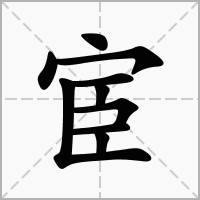 (会意。从宀 mián,表示与家庭房屋有关。从臣。“臣”本奴隶。合起来的意思是家室奴仆。本义:做奴隶主或帝王的奴仆)