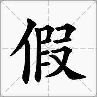 (形声。从人,叚(jiǎ)声。“叚”亦兼表字义。本义:不是真的)