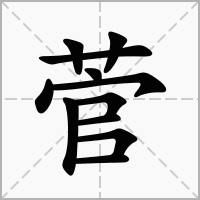 又如:菅茅(茅草的一种);菅菲(菅履,草鞋);菅筲(用菅草编的盛饭器);菅荐(草席)