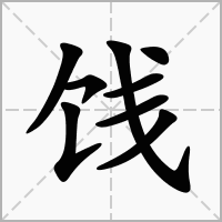 (形声。从食,戋(qiān)声。本义:设酒食送行)