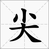 (会意。从小,从大。一头小一头大为尖。本义:物体的末端细削而锐利)