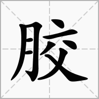 (形声。古代“胶”用动物的皮煮制而成,所以从“肉”。段玉裁说:“皮近肉,故字从肉。”本义:粘性物质,用动物的皮角或树脂制成)