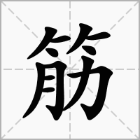 (会意。从肉,从力,从竹。因为竹多筋,故从“竹”。本义:附着在骨上的韧带)