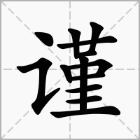 又如:谨呈(敬呈);谨启;谨致谢意;谨祈;谨恪(谨谨恭敬);谨白(敬告,敬启);谨禀(禀告);谨媚(恭顺柔媚)