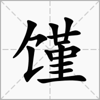 (形声。从食,堇(qín)声。本义:蔬菜和野菜都吃不上)