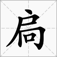 (形声。从户,冋(jiǒng)声。本义:从外面关门的门闩)