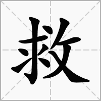 (形声。从攴(pū),轻轻敲击,求声。本义:止;禁止;阻止)