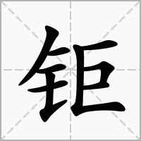 又如:钜富(巨富);钜衍(广大);钜亿(极大的数目。即万亿);钜儒(博学硕儒。指大学者);钜藩(大的诸侯国);钜公(天子;又通称大家、尊者)