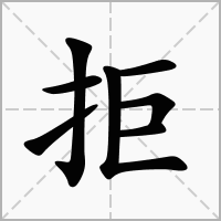 又如:拒谏(不肯接受别人的规劝);拒物(拒绝外物,谓不与外界接触);拒却(拒绝,推却);拒闭(闭门拒绝)