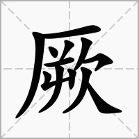 (形声。从厂(hǎn,山崖),欮(jué)声。本义:石块)同本义