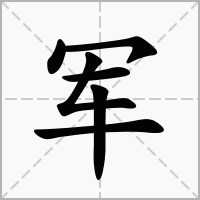 (会意。金文字形,从车,从勹(bāo,包裹)。表示用车子打包围圈的意思。古代打仗主要靠车战,驻扎时,用战车围起来形成营垒,以防敌人袭击。本义:围成营垒)