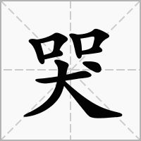 (会意。甲骨文字形,从(xuān),表示号呼;中间象一人擗踊的样子。本义:悲痛出声,声泪俱下)