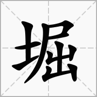 又如:堀穴(洞穴;指贱者所住的地方);堀堁(尘沙飞扬的样子)