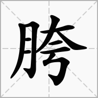 又如:胯子(腰的两侧和大腿之间的部分);胯夫(指韩信。汉淮阴侯韩信早年未得志时,,有人欺侮他,让他从胯下爬了过去)。又指衣服掩蔽股胫的部分。